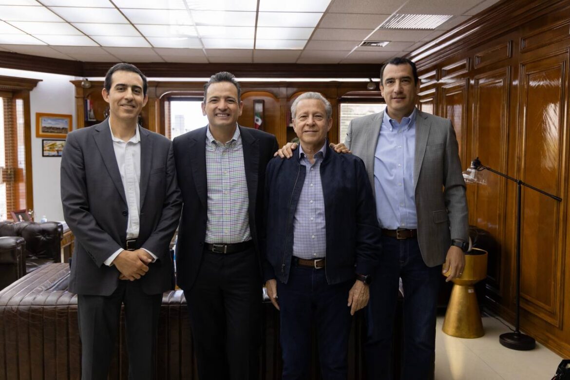 H. Ciudad de Chihuahua, Chih., a 8 de mayo de 2025.- El alcalde Marco Bonilla sostuvo una reunión con Óscar Molina, presidente saliente de Expo Chihuahua, y Jorge Barud, quien asume el cargo como nuevo presidente, donde conversaron sobre los logros que se han tenidos en este importante espacio.