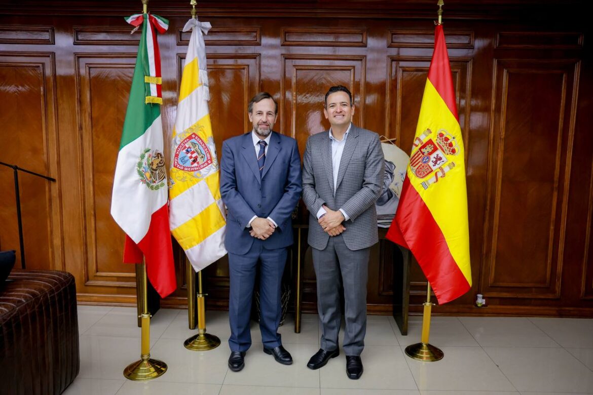 El alcalde Marco Bonilla recibió en su despacho al cónsul General de España en Monterrey, Vicente- J. Mas Taladriz, con quien compartió la visión que el Gobierno Municipal tiene para la capital, así como los proyectos de desarrollo económico proyectados para los próximos años.