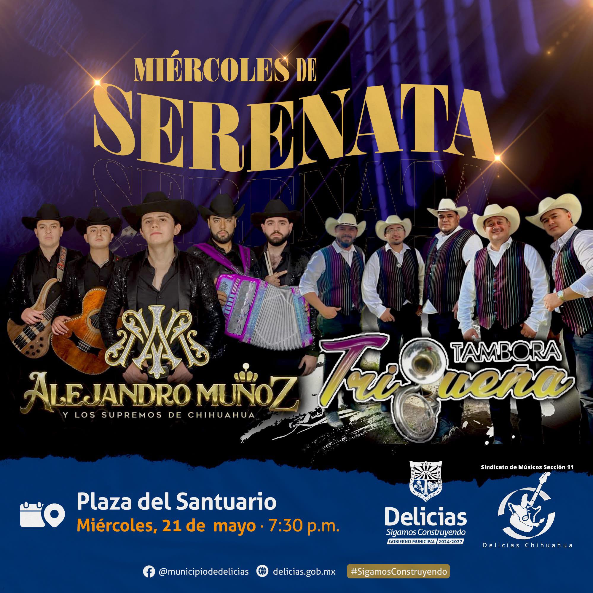 El titular del Cultura en Delicias, Mario Guillén Porras, invitó a las familias delicienses a disfrutar de una velada llena de música y ambiente familiar en el Miércoles de Serenata, que se llevará a cabo este miércoles 21 de mayo a partir de las 7:30 de la noche en la Plaza del Santuario.
