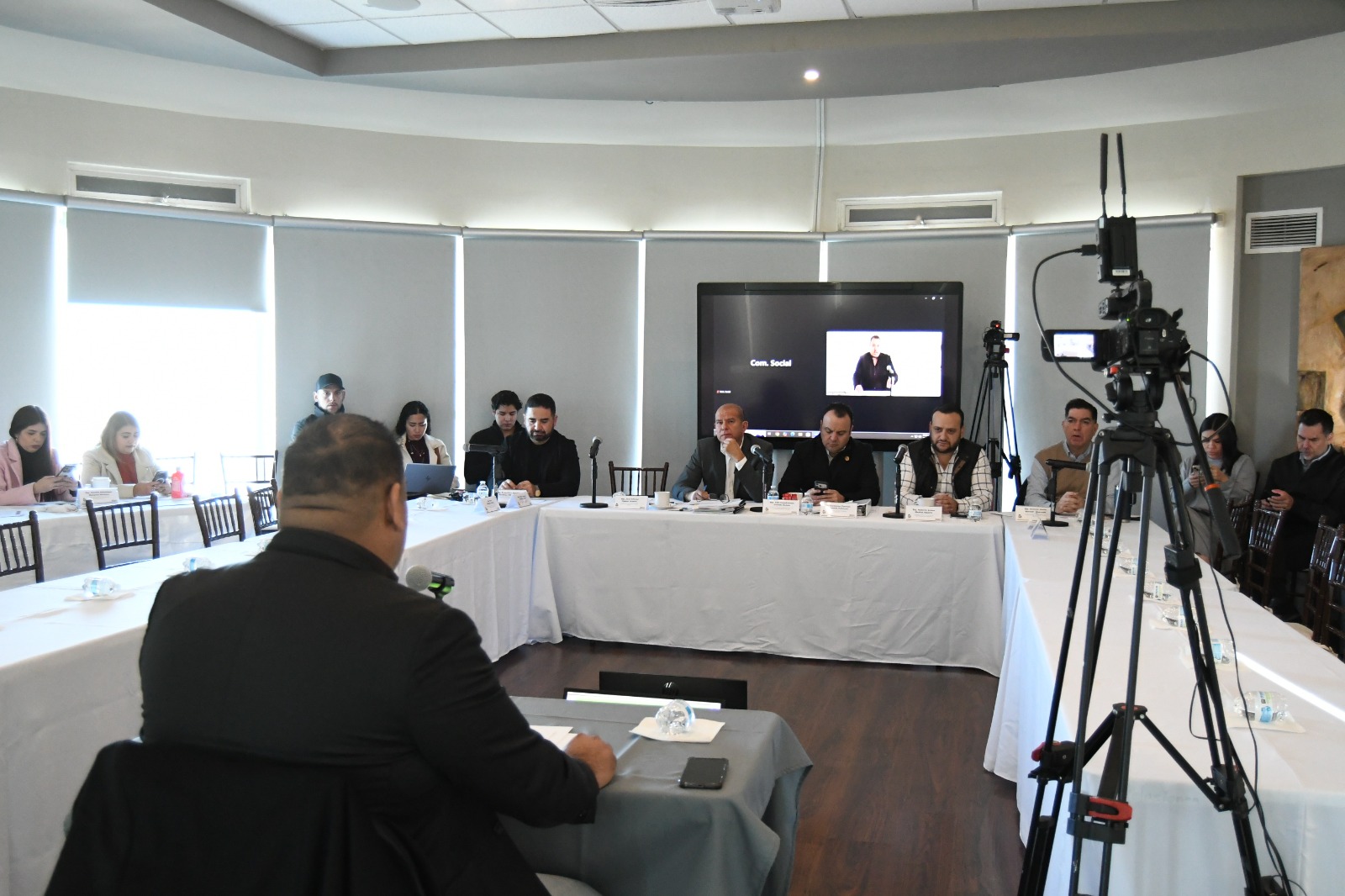 En esta reunión de trabajo, estuvieron presentes Cuauhtémoc Estrada, presidente de la JUCOPO; Alfredo Chávez, Coordinador del GPPAN; Arturo Medina, Coordinador del GPPRI, Guillermo Ramírez, presidente de la Mesa Directiva; Francisco Sánchez, Coordinador del GPPMC y, Octavio Borunda, representante del Partido Verde.