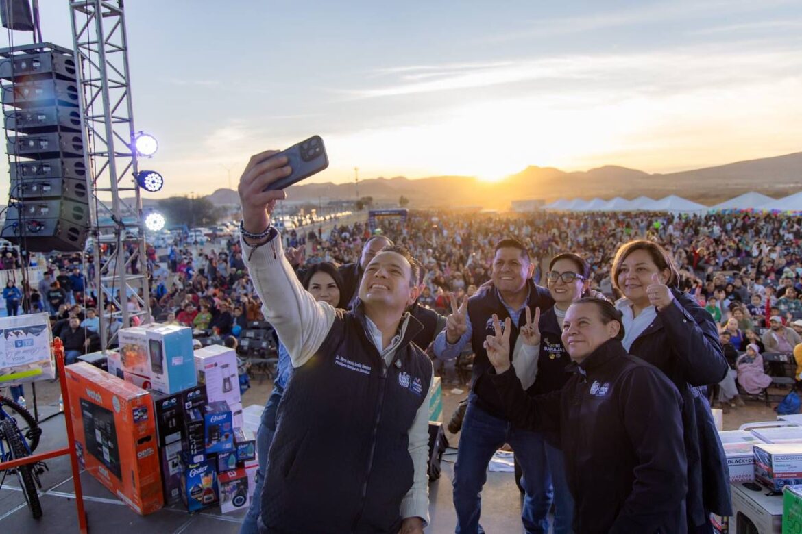 Convive Marco Bonilla con más de 5 mil chihuahuenses de Vistas del Norte y parten Rosca de Reyes