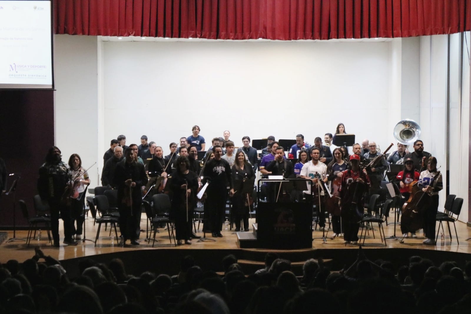 La Orquesta Sinfónica de la Universidad Autónoma de Chihuahua ofreció el concierto “Música y Deporte: Fútbol americano y el Super Bowl”, en una velada que combinó la fuerza del deporte con la expresividad musical, en el Paraninfo Universitario.