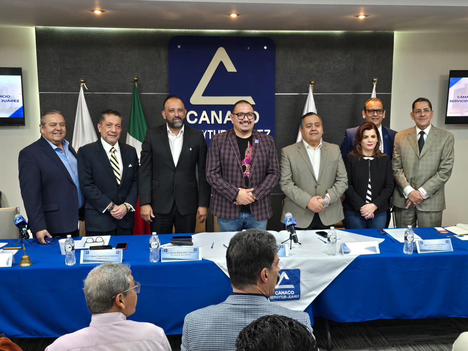 El Secretario del Ayuntamiento, Héctor Rafael Ortiz Orpinel, acudió en representación del Presidente Municipal, Cruz Pérez Cuéllar a la ceremonia en la que se ratificó a Iván Pérez Ruíz como presidente de la Cámara Nacional de Comercio, Servicios y Turismo (CANACO) para el periodo 2026-2027.