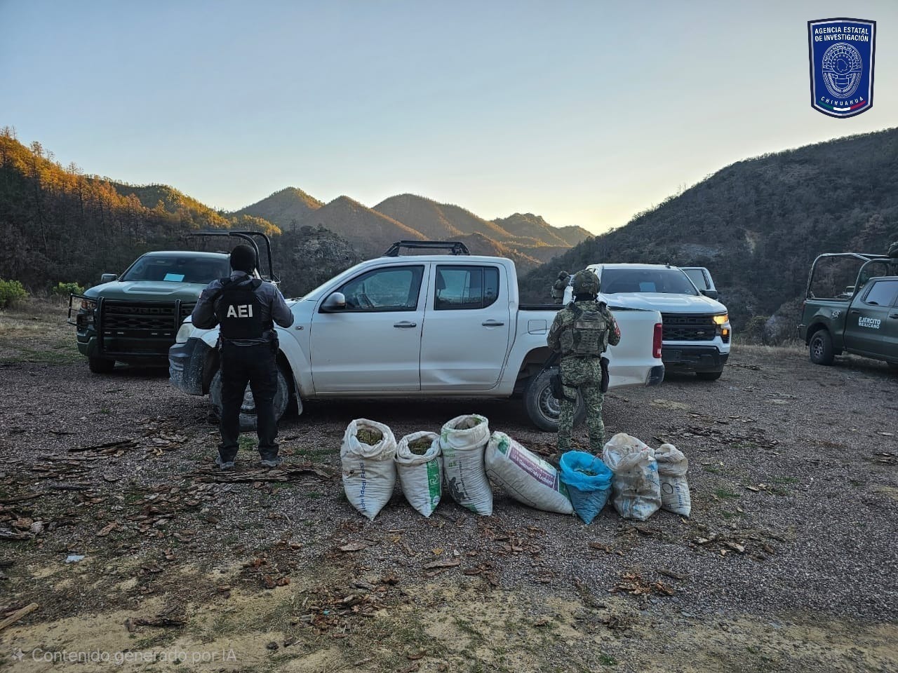 El Operativo Conjunto que se realiza en distintas localidades de los municipios de Bocoyna y Maguarichi, permitieron el aseguramiento de un vehículo pick up, así como siete costales con 44.5 kilogramos de mariguana.