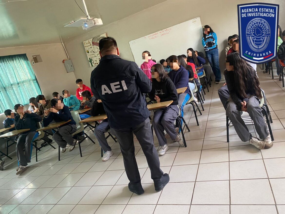 Dentro de la jornada de “Intervención para la prevención y protección de la comunidad escolar”, la Agencia Estatal de Investigación (AEI), a través del Grupo de Orientación Escolar Chihuahuense (GOECHI) de la Fiscalía de Distrito Zona Noroeste, se reunió con alumnos de Escuela Secundaria Estatal, Abraham González #3047, en San Buenaventura.