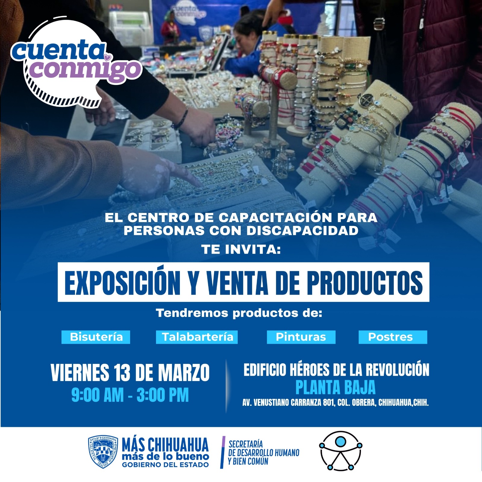 El Gobierno del Estado, a través de la Secretaría de Desarrollo Humano y Bien Común, invita este viernes 13 de marzo a la exposición y venta anual de productos elaborados por usuarios del Centro de Capacitación para Personas con Discapacidad.