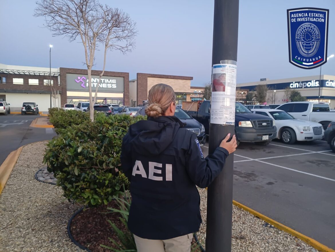 Personal de la Fiscalía de Distrito Zona Noroeste, realizó un operativo coordinado con la Agencia Estatal de Investigación, para la pega y difusión de pesquisas de una persona con reporte de extravío, en el municipio de Nuevo Casas Grandes.