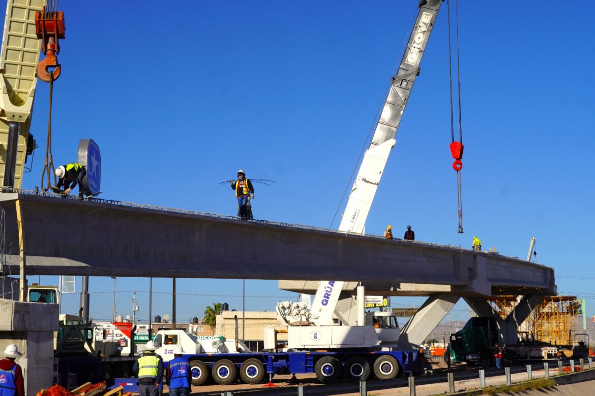 Con el objetivo de mejorar la movilidad en la zona norte de la ciudad, el Gobierno Municipal, a través de la Dirección de Obras Públicas, avanza con los trabajos de construcción del Paso Superior en la intersección de la vialidad Los Nogales y avenida de las Industrias, obra que actualmente presenta un 42 por ciento de avance general.