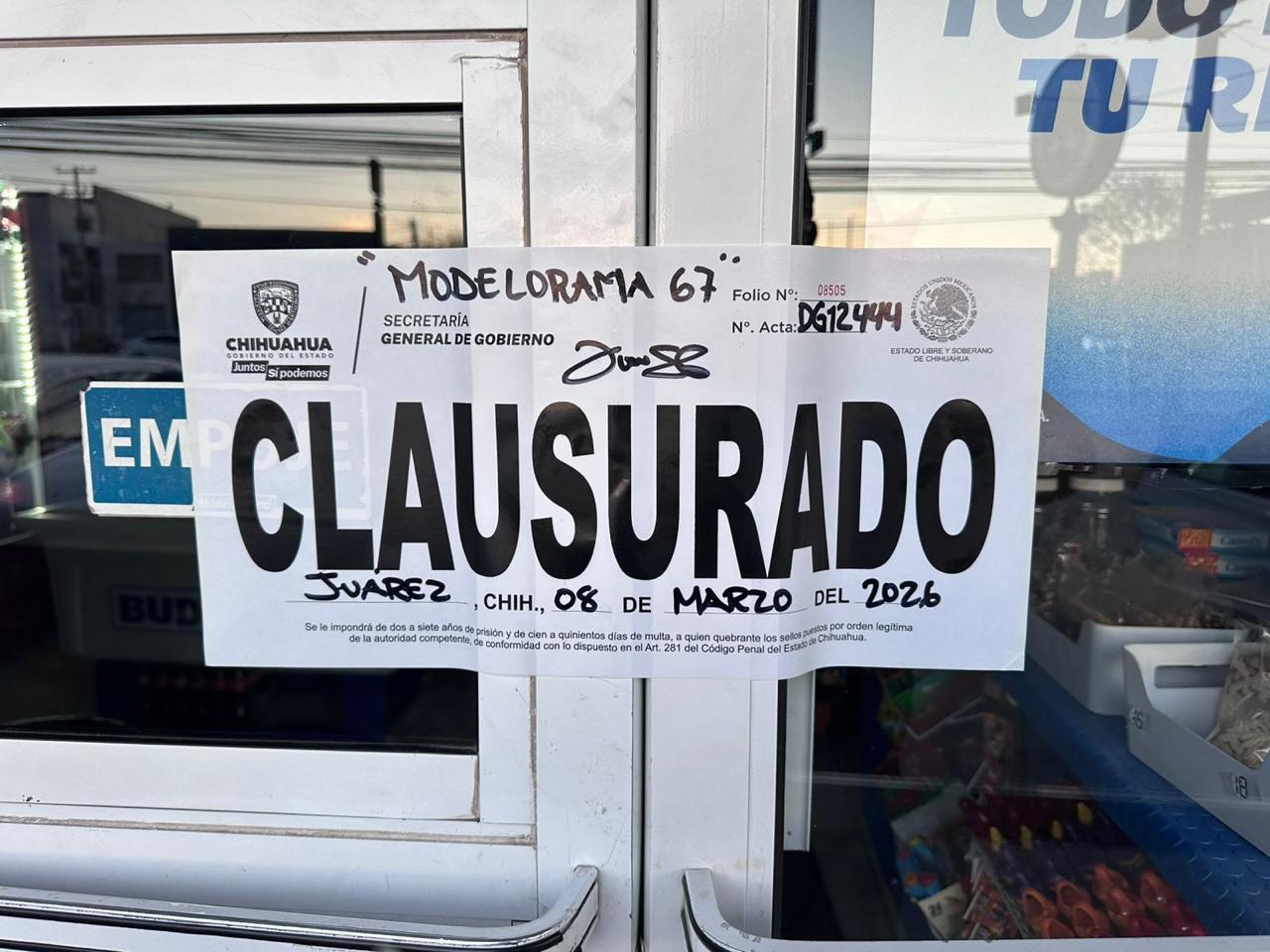 -Juárez: - Tienda de abarrotes “Modelorama 67” por violación de giro