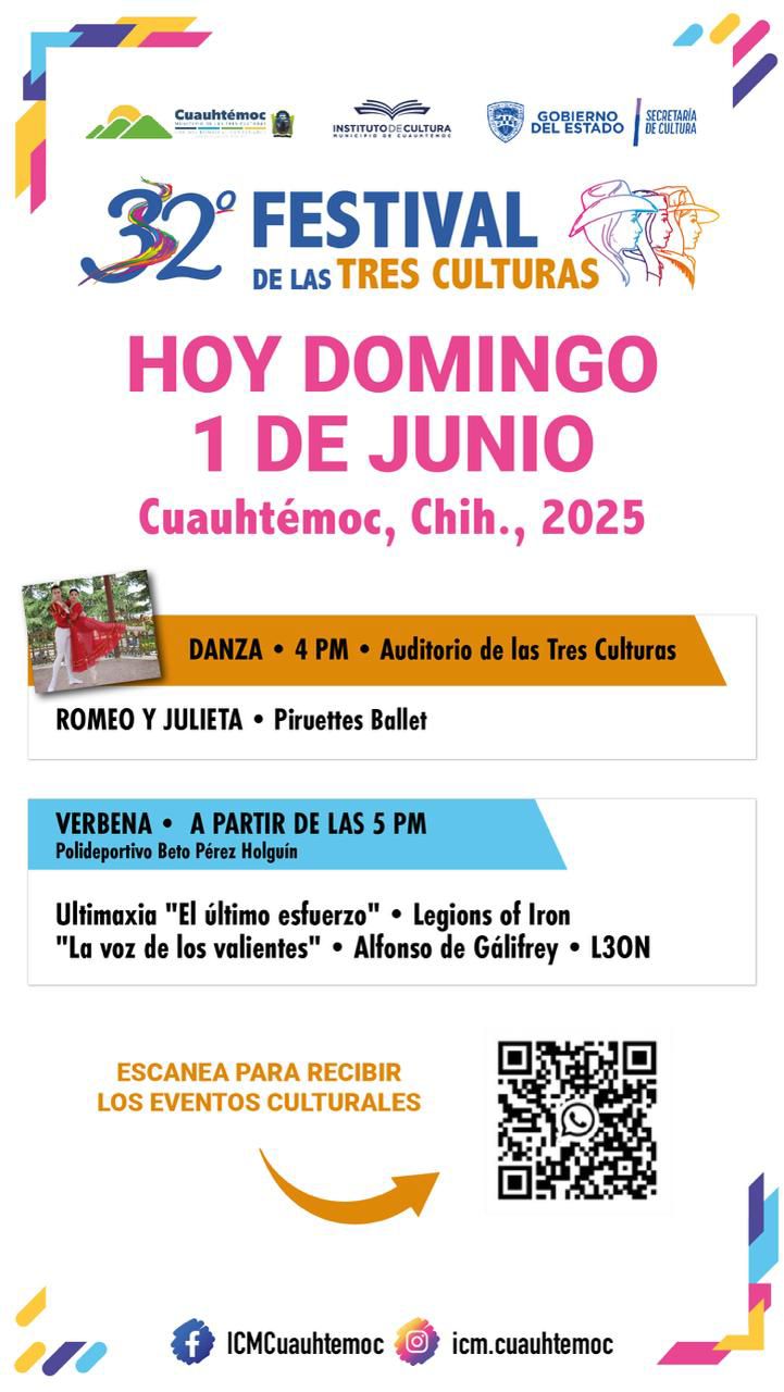 Este domingo 1 de junio, el 32° Festival de las Tres Culturas continúa con una tarde llena de danza, música y talento en Cuauhtémoc: